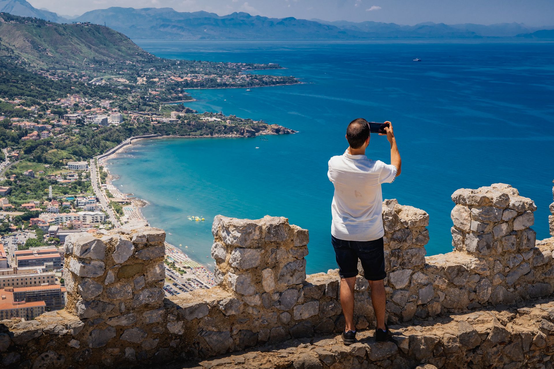 Attraverso un sentiero in salita immerso nel verde, recintato a mezza costa da alte mura merlate risalenti al periodo medievale, è possibile raggiungere il punto più alto della Rocca di Cefalù da cui ammirare tutta la città, con un panorama mozzafiato che si estende da Palermo a Capo D’Orlando.
